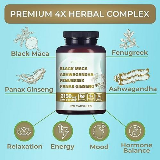 4-in-1 Organic Black Maca Root, Ashwagandha, Fenugreek, Panax Ginseng Supplement