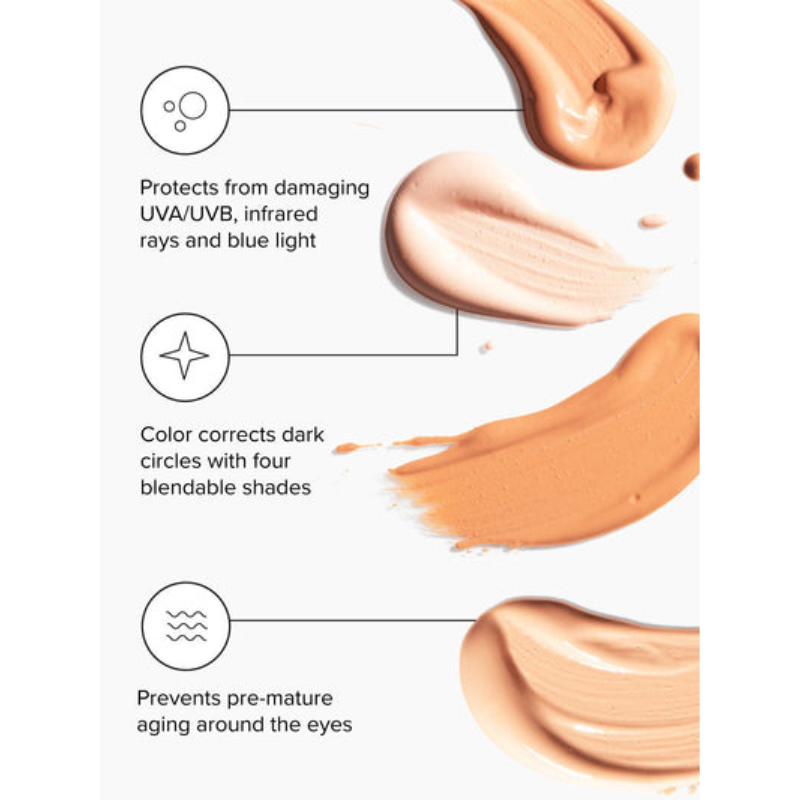 You don’t need layers of makeup—you need correction. This medical-grade formula is designed to neutralize dark circles, depuff under-eyes, and protect with SPF 41.